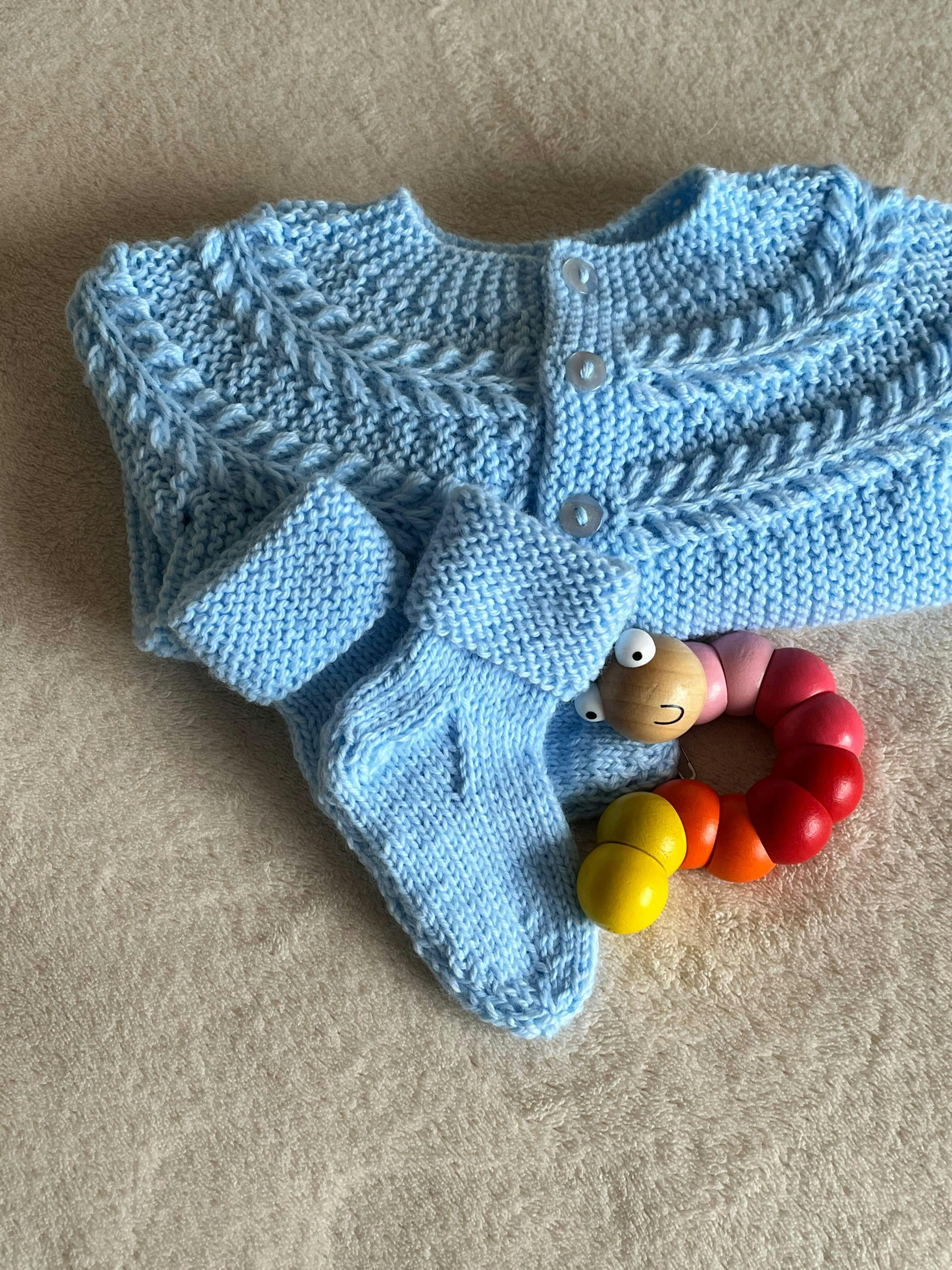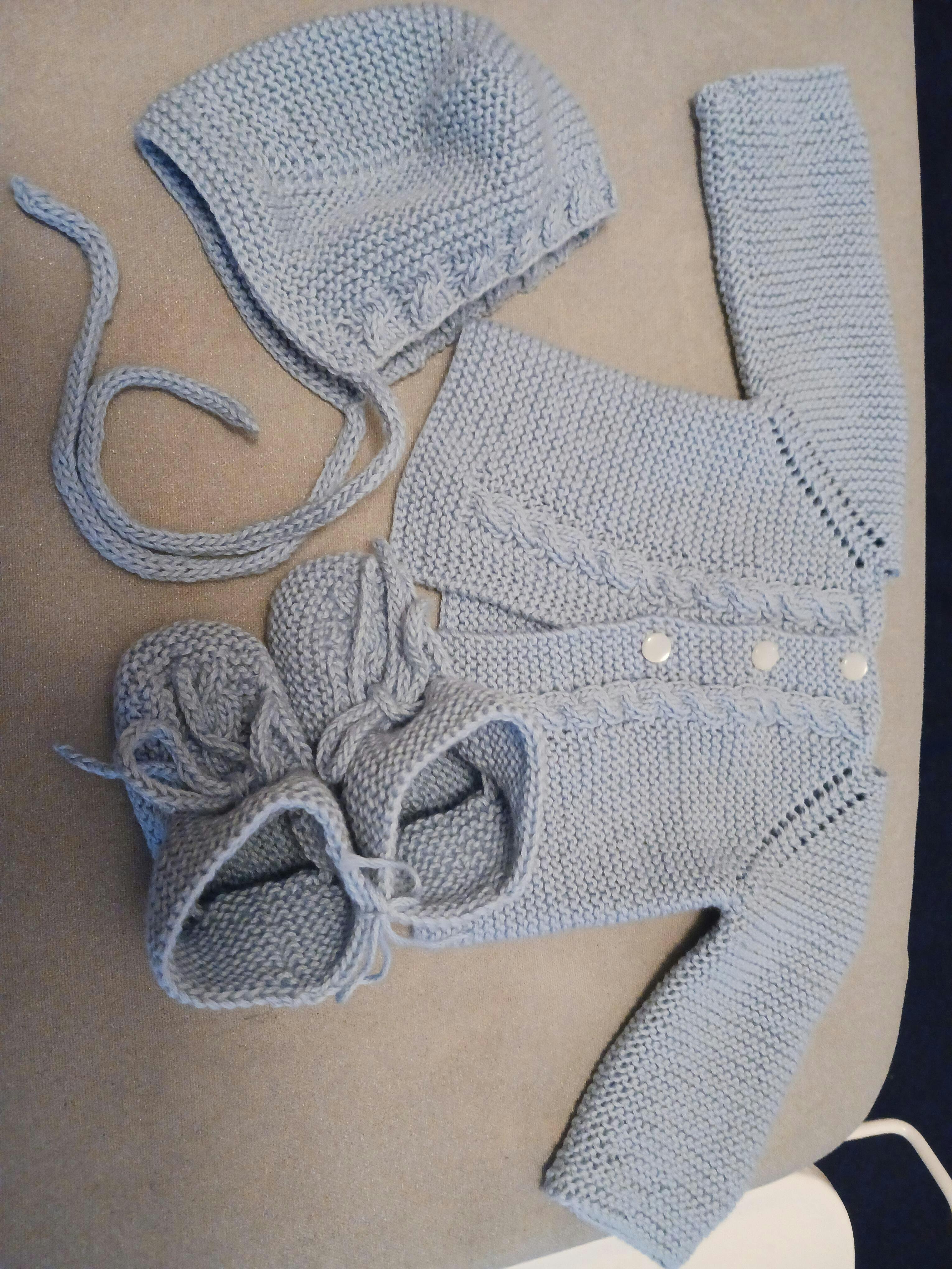 Tenho feito vários trabalhos e gosto muito. Com 3 novelos fiz este casaquinho e as meias