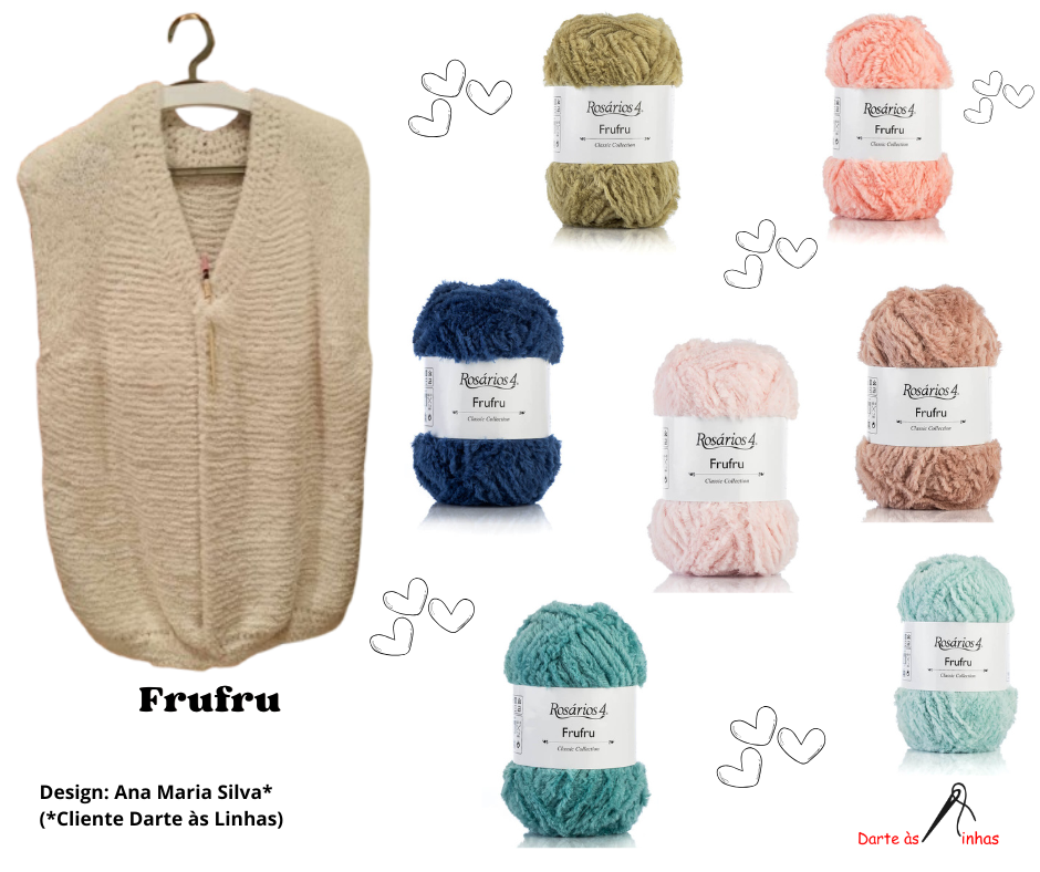 Frufru é um Fio super fofo, constituído por 80% de poliamida e 20% de poliéster, que oferece uma sensação extremamente suave e uma textura luxuosa.