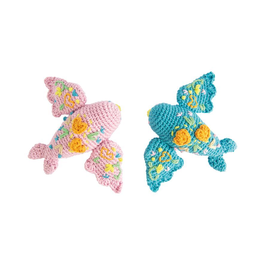 Modelo de duas andorinhas inspiradas pelas cerâmicas Bordallo Pinheiro e os Lenços dos Namorados.