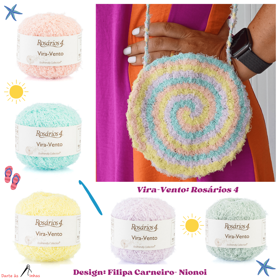 Vira-Vento é um fio de Verão, com uma textura original e macia, que faz fluir ideias e novos projetos.